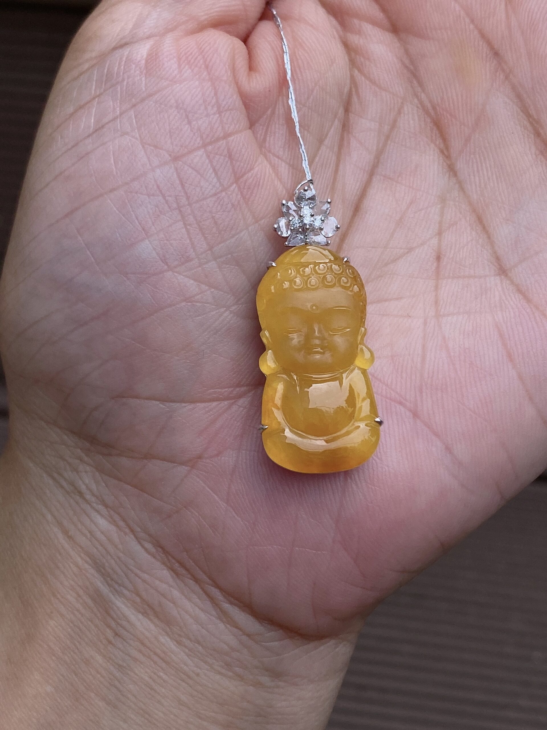 Be the first to review “Natural Burmese  Jade Baby Buddha Pendant in 18k White Gold with Diamond”